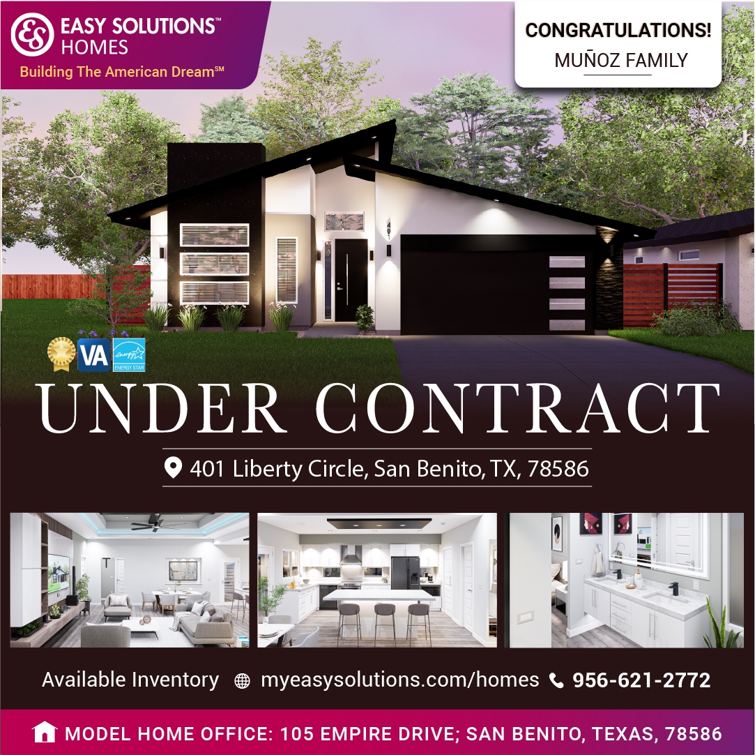 #EasySolutionsHomes #SanBenitoTX #TexasRealEstate #NewHomesTexas #HomesForSaleTexas #DreamHome #HomeOwnership #UnderContract #NewConstructionHomes #RGVRealEstate #TexasHomes #SanBenitoHomes #AmericanDream