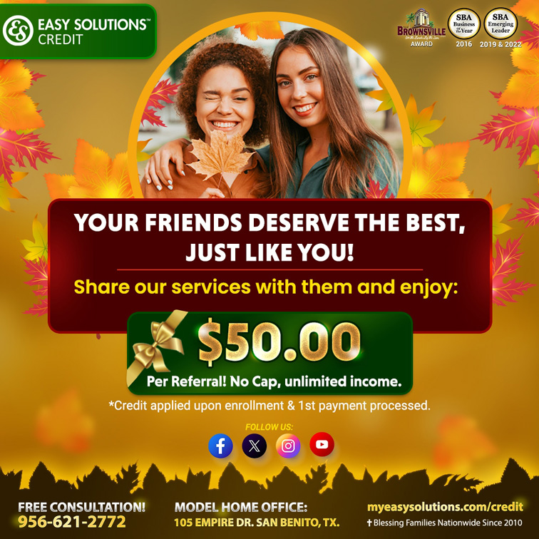 Spread the word, help someone, and EARN $50.00 each time someone you refer signs up.