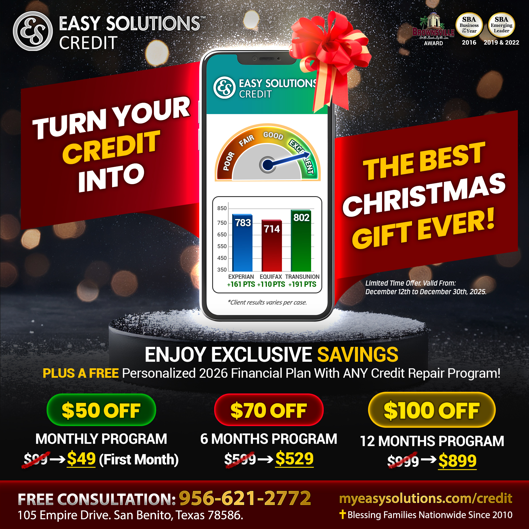 Easy Solutions Credit is offering Exclusive Holiday Discounts to help you: