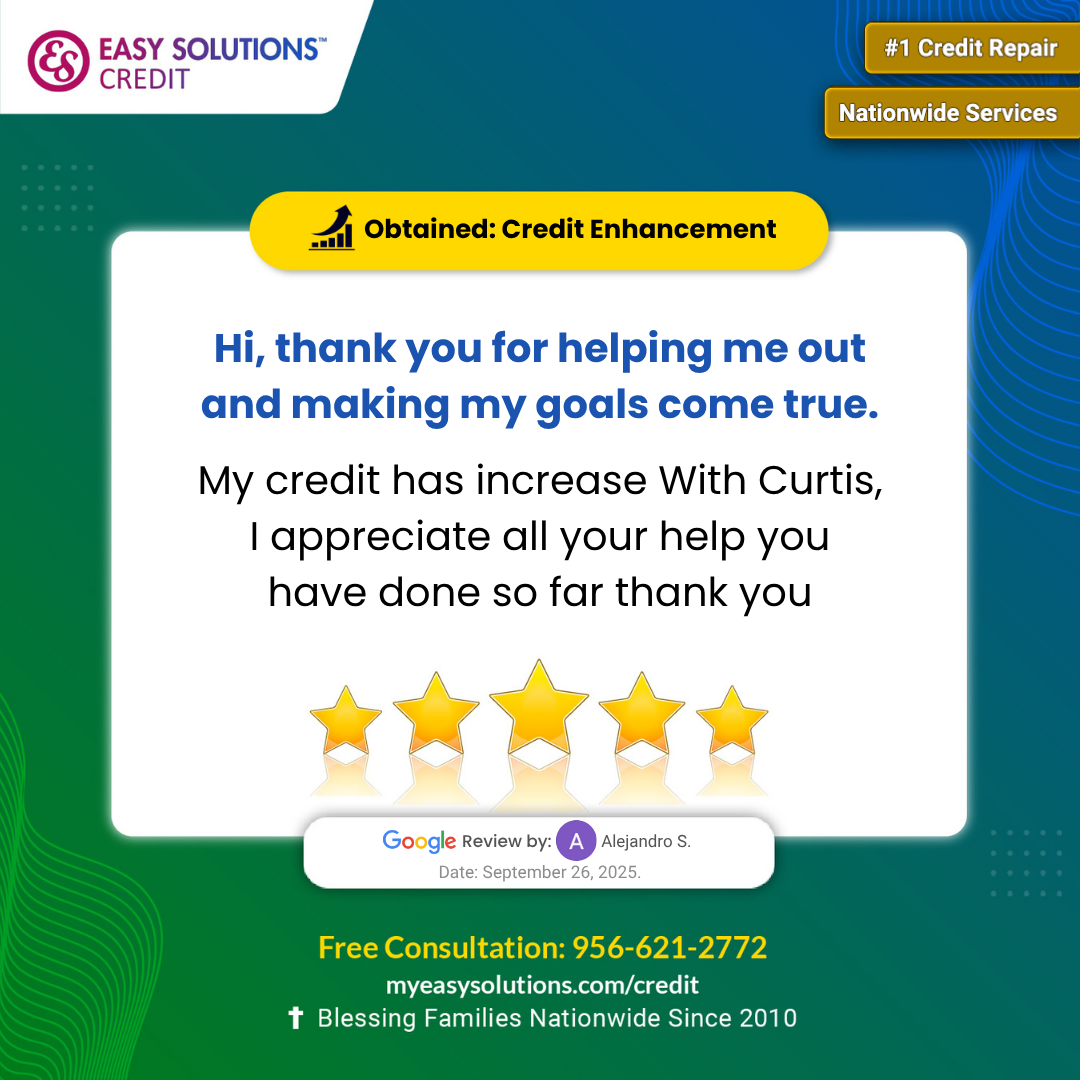 “Hi, thank you for helping me out and making my goals come true my credit has increase With Curtis, I appreciate all your help you have done so far thank you”