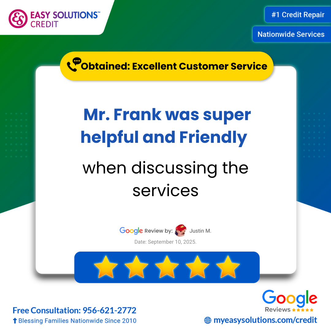 "Mr. Frank was super helpful and Friendly when discussing the services" - Justin Martinez
