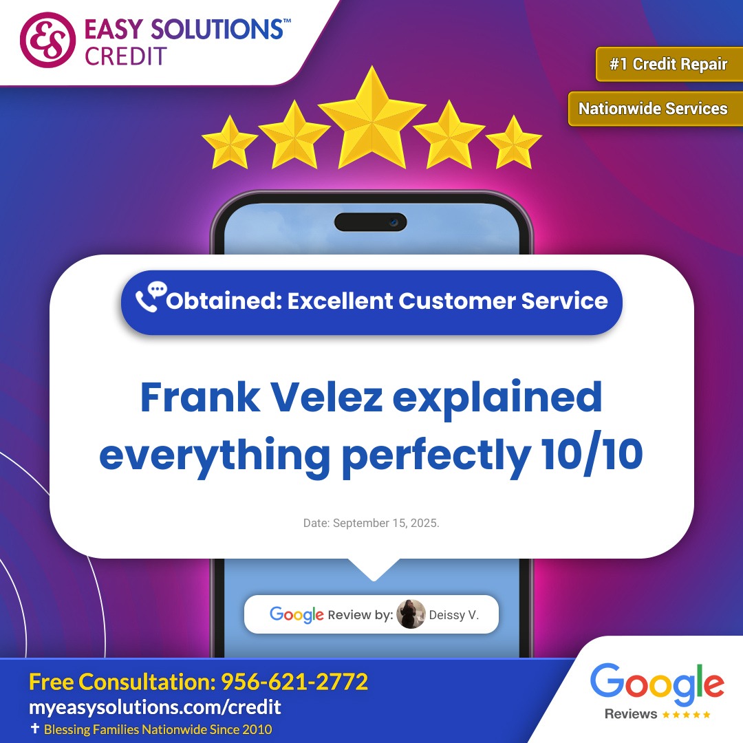 "Frank Velez explained everything perfectly 10/10" -Deissy V.